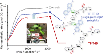 Green-light wavelength-selective organic solar cells for agrivoltaics: dependence of wavelength on photosynthetic rate
