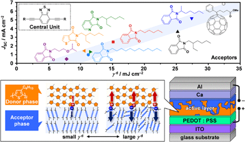 Electron-Accepting π-Conjugated Systems for Organic Photovoltaics: Influence of Structural Modification on Molecular Orientation at Donor–Acceptor Interfaces